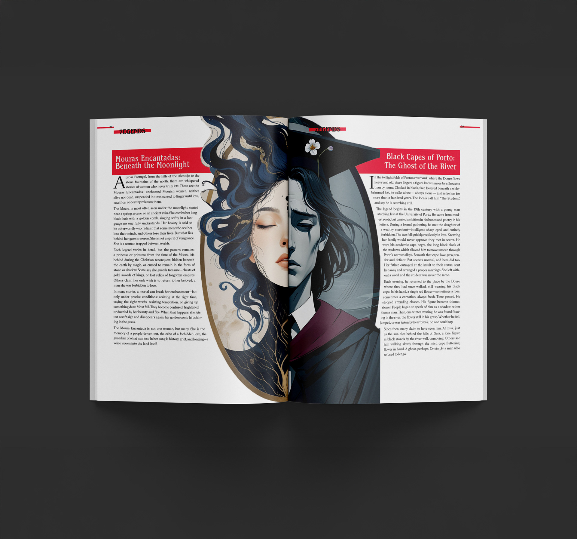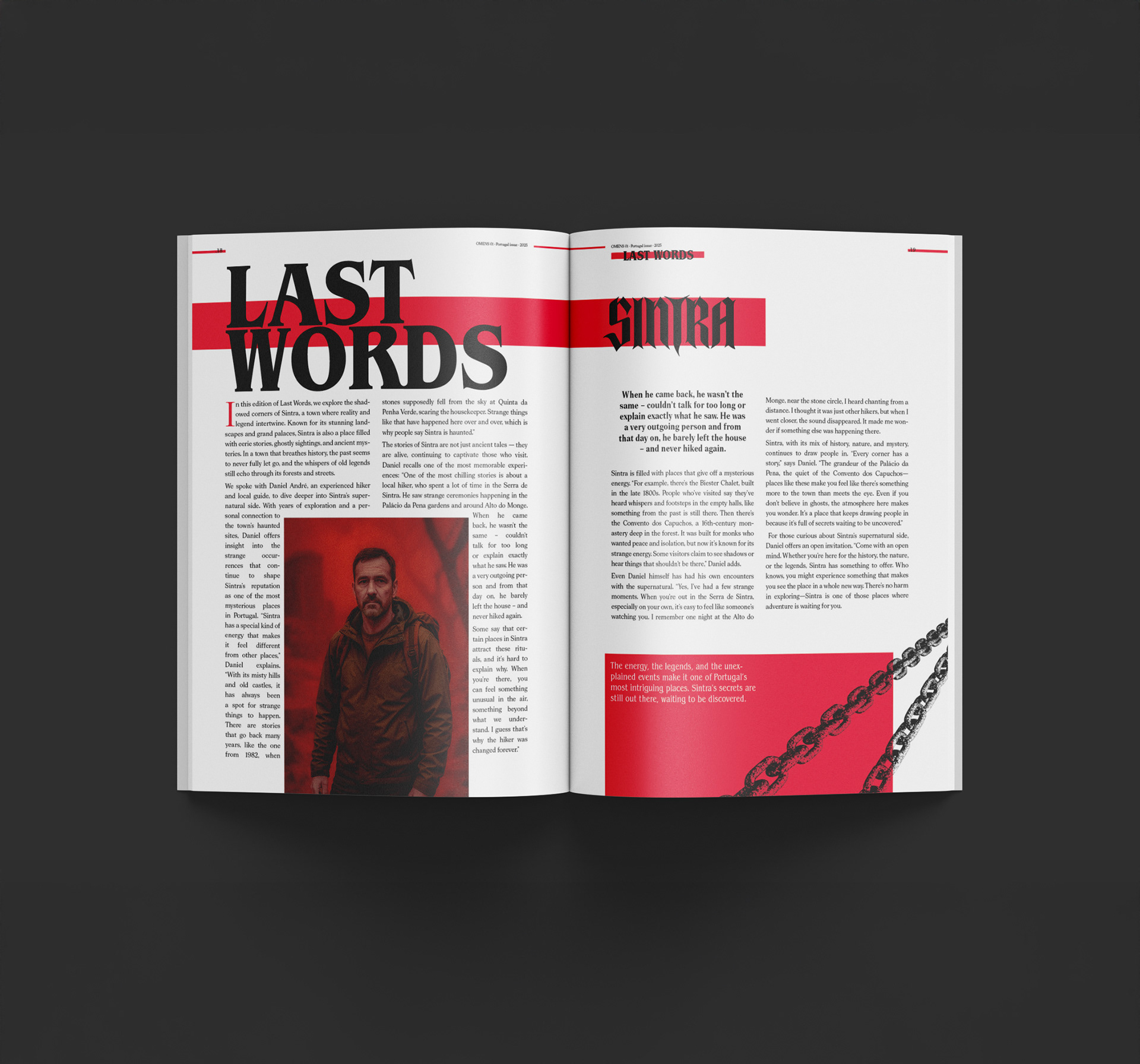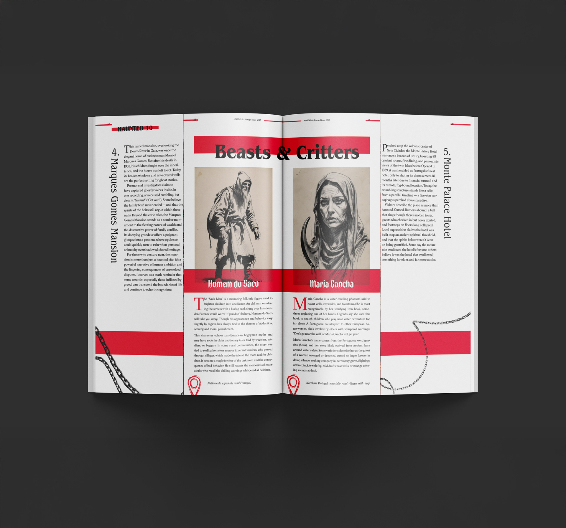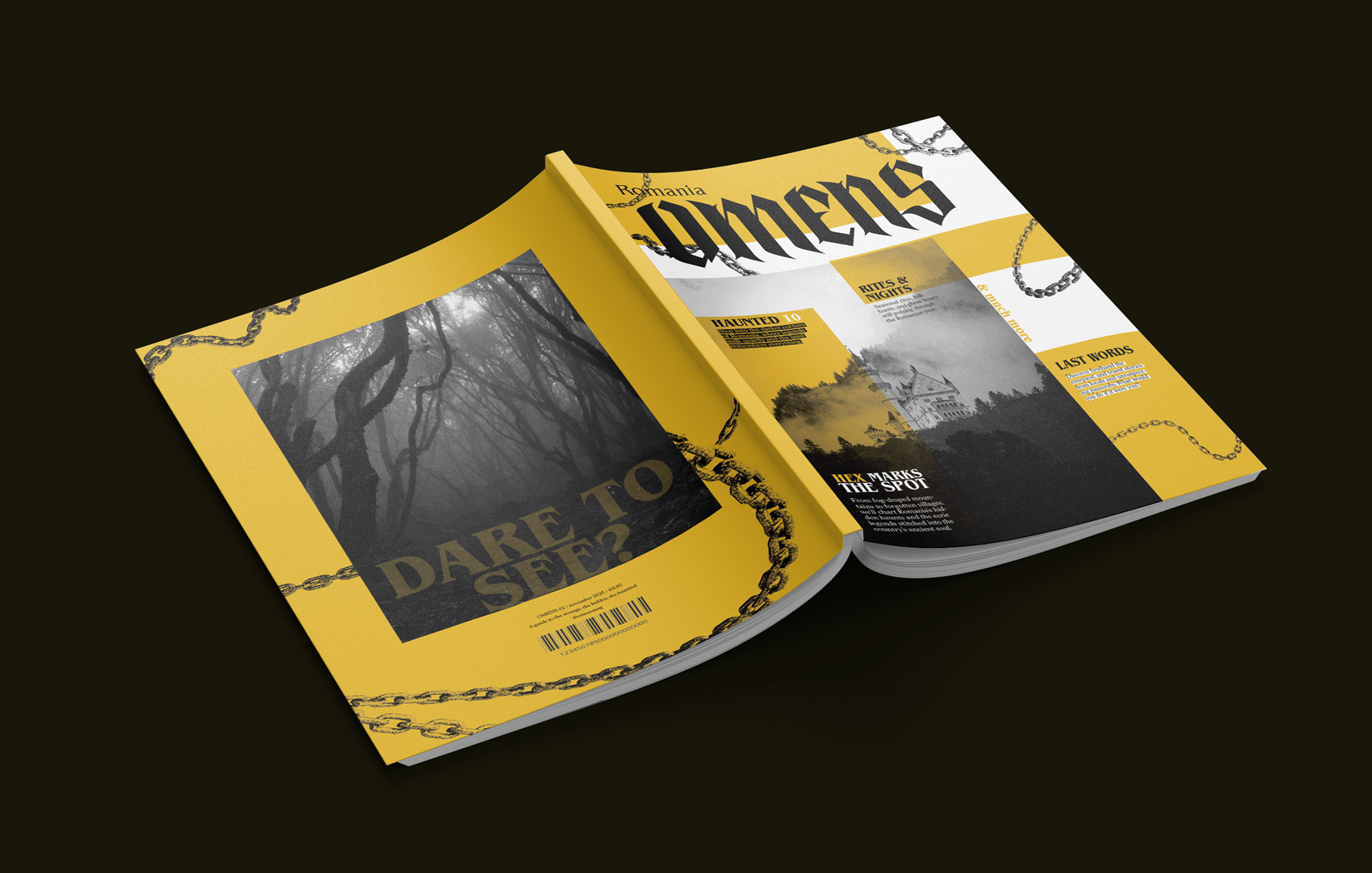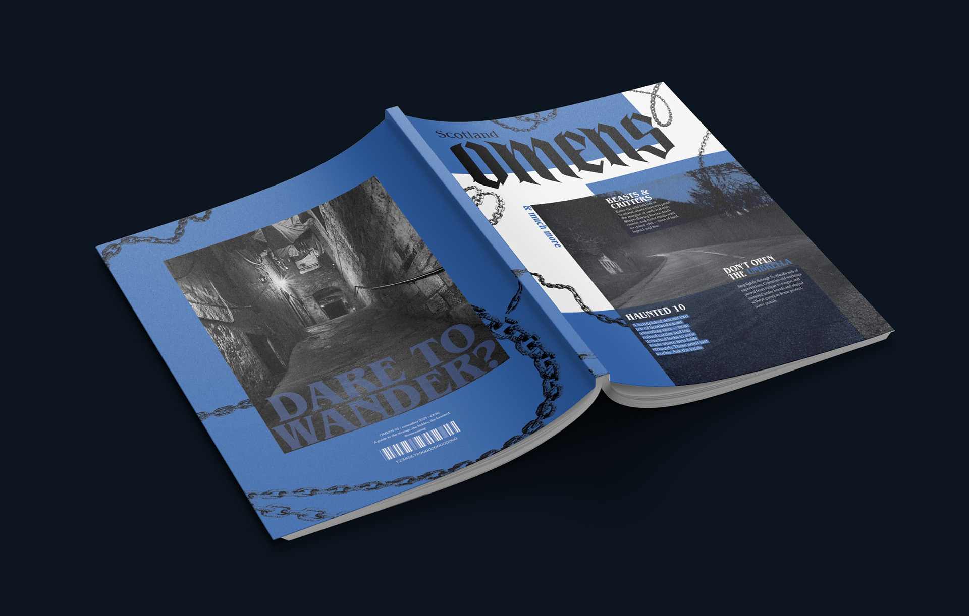 editorial design project for a semestral independent magazine exploring the mysteries, the haunted, the unspoken rituals, and dark heritage of the oldest continent. Not a history magazine but a collection of whispers, warnings and wonders that still haunt the landscape.